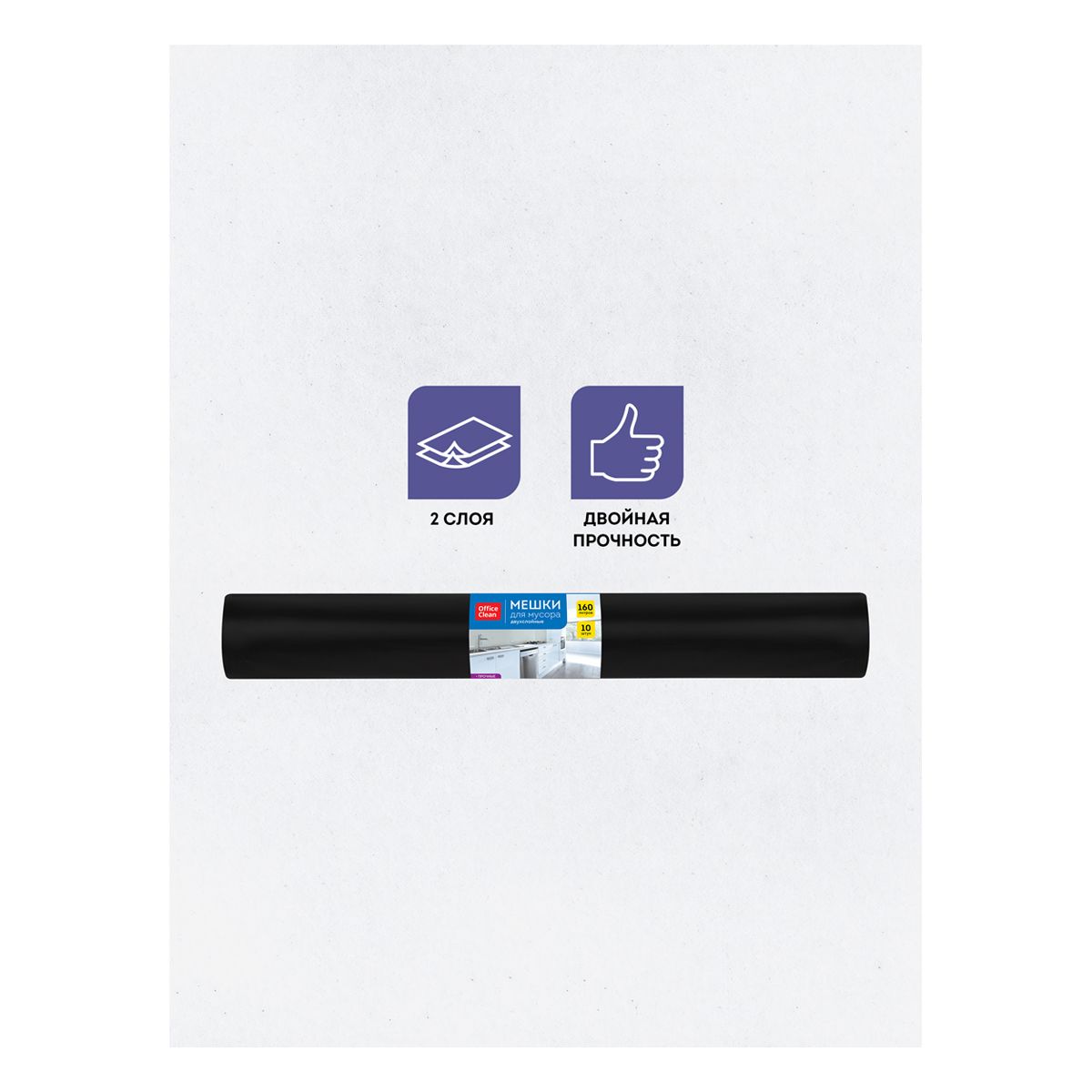 Мешки для мусора 160л OfficeClean ПВД, 90*120см, 30мкм, 10шт., двухслойные, прочные, черные, в рулоне
