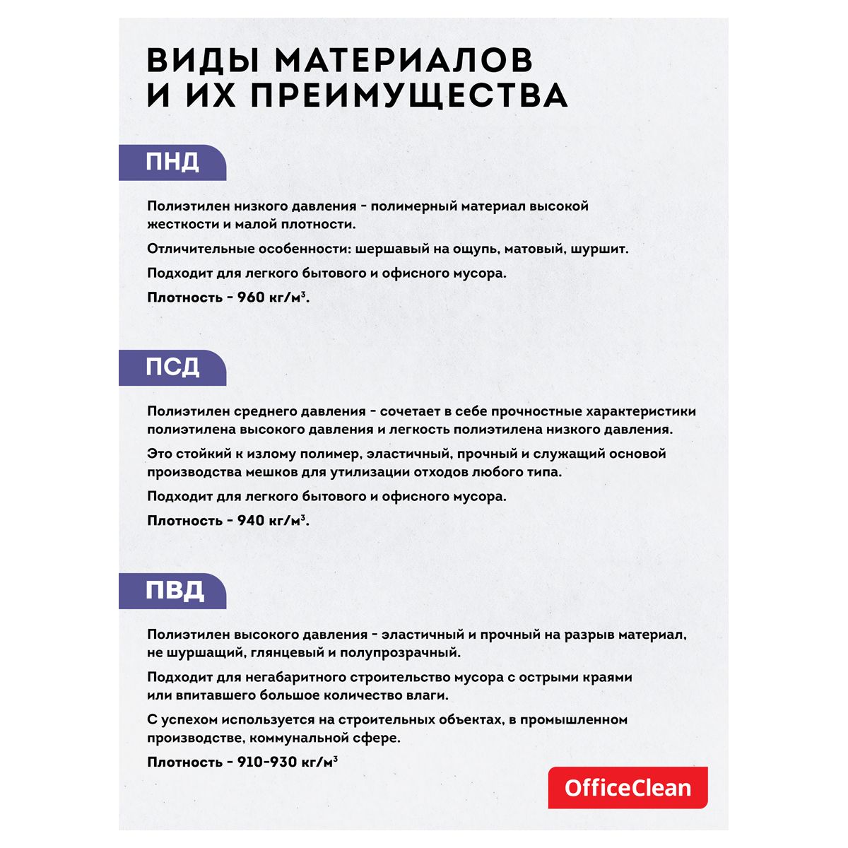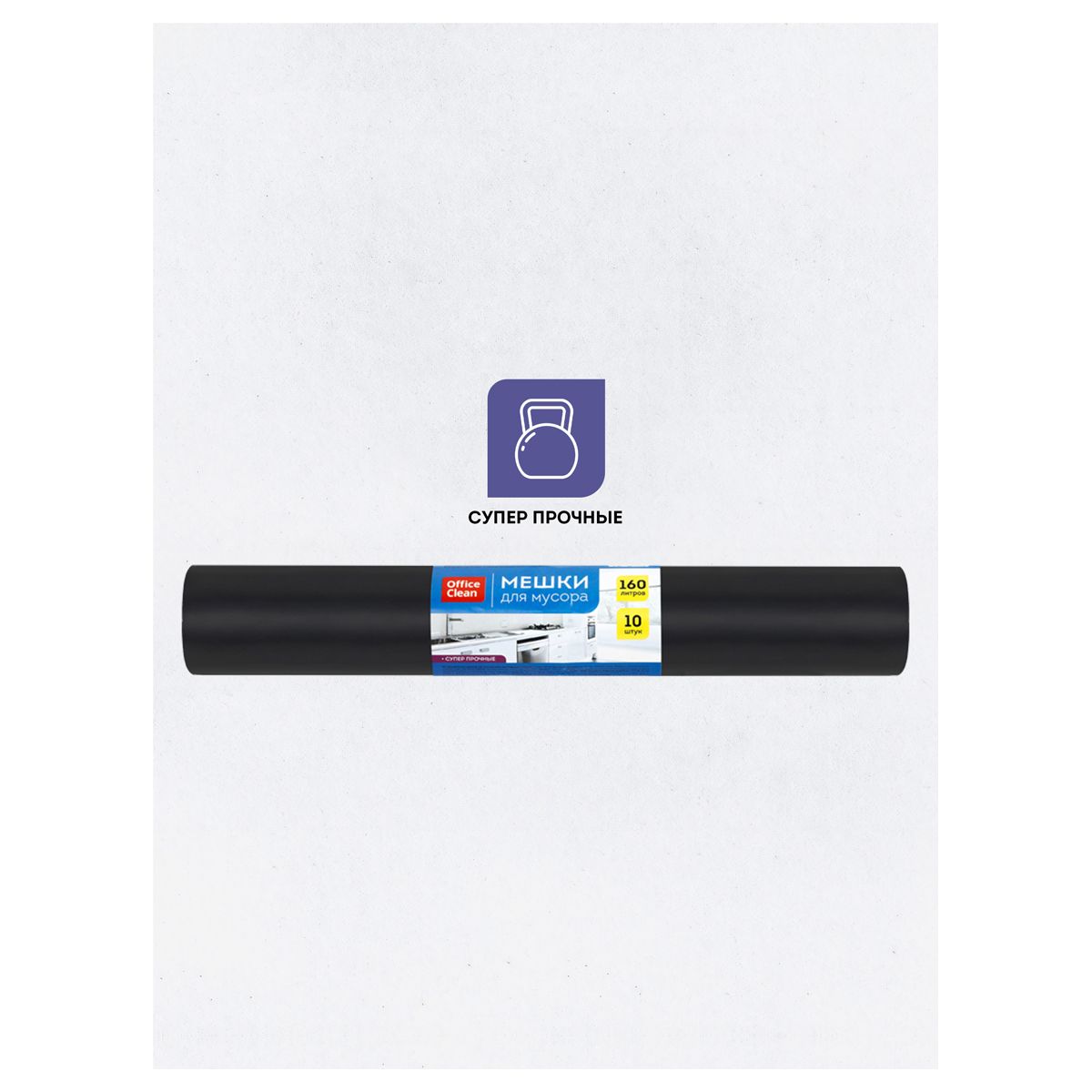 Мешки для мусора 160л OfficeClean ПВД, 90*120см, 65мкм, 10шт., суперпрочные, черные, в рулоне