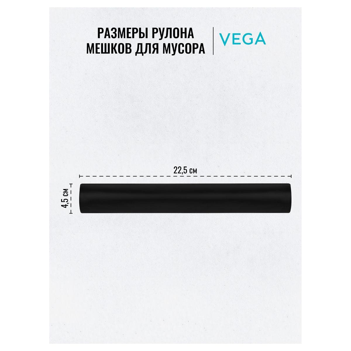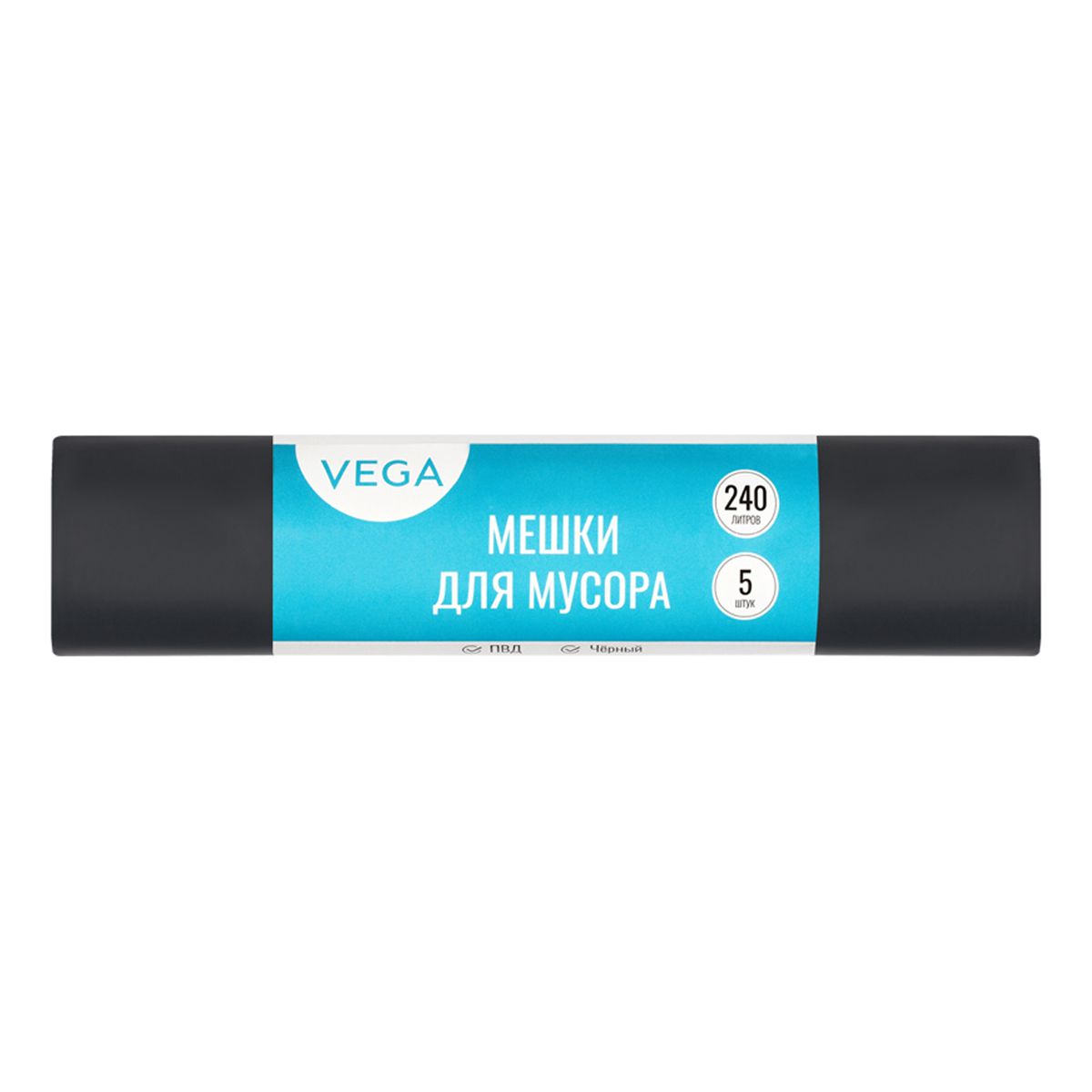 Мешки для мусора 240л VEGA ПВД, 90*130см, 25мкм, 5шт., черные, в рулоне