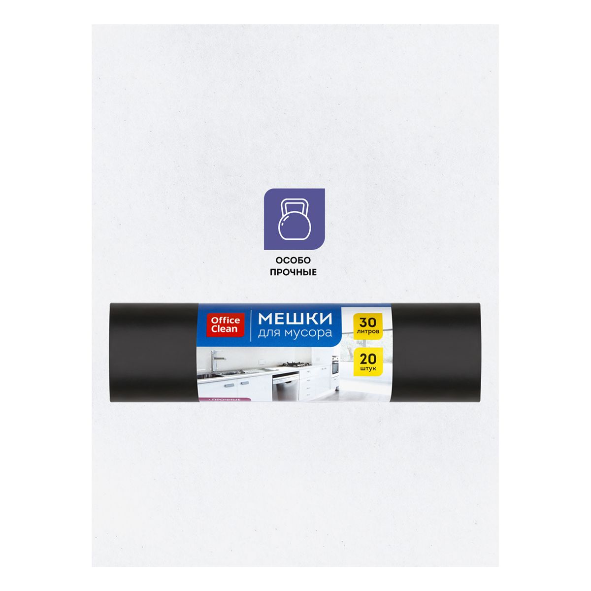 Мешки для мусора 30л OfficeClean ПВД, 50*60см, 20мкм, 20шт., особо прочные, черные, в рулоне