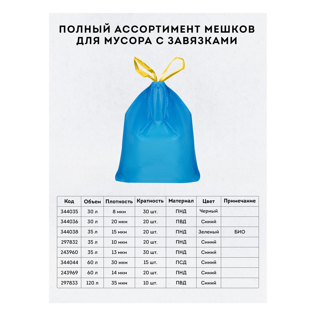 • Объем мешков: 30 л.;