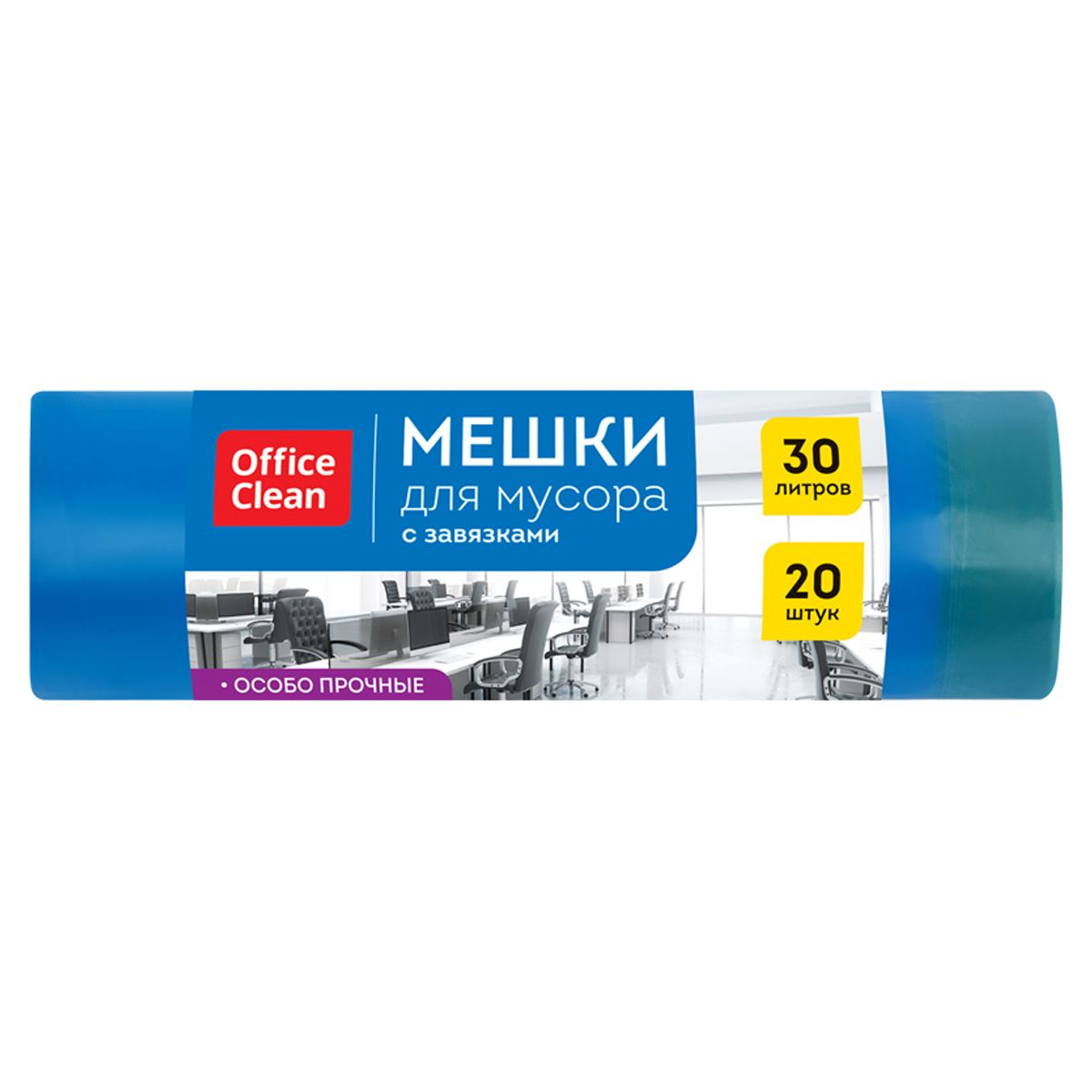 Мешки для мусора 30л OfficeClean ПВД, 50*60см, 20мкм, 20шт., особо прочные, синие, в рулоне, с завязками