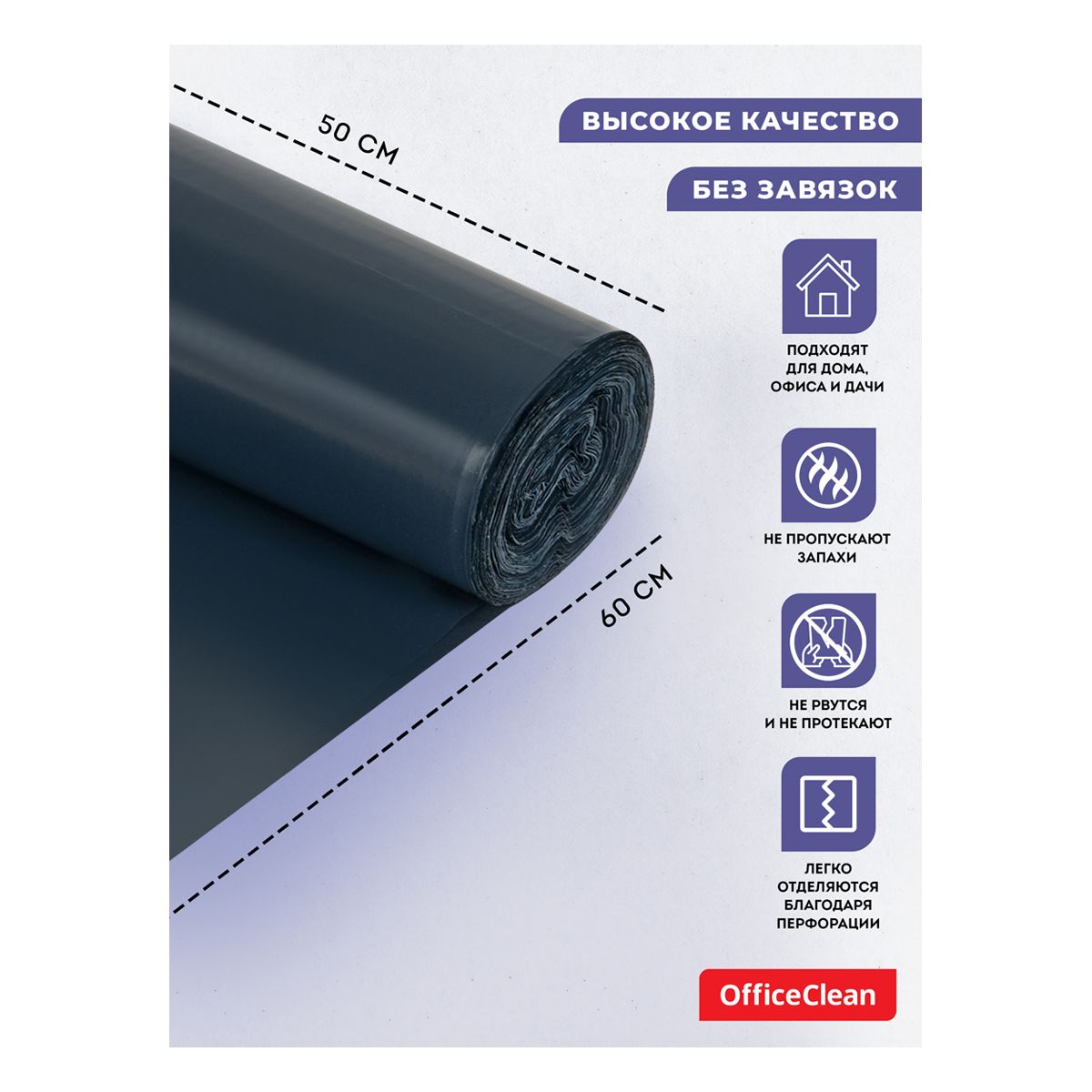 Мешки для мусора 35л OfficeClean ПВД, 50*60см, 30мкм, 20шт., двухслойные, особо прочные, синие, в рулоне