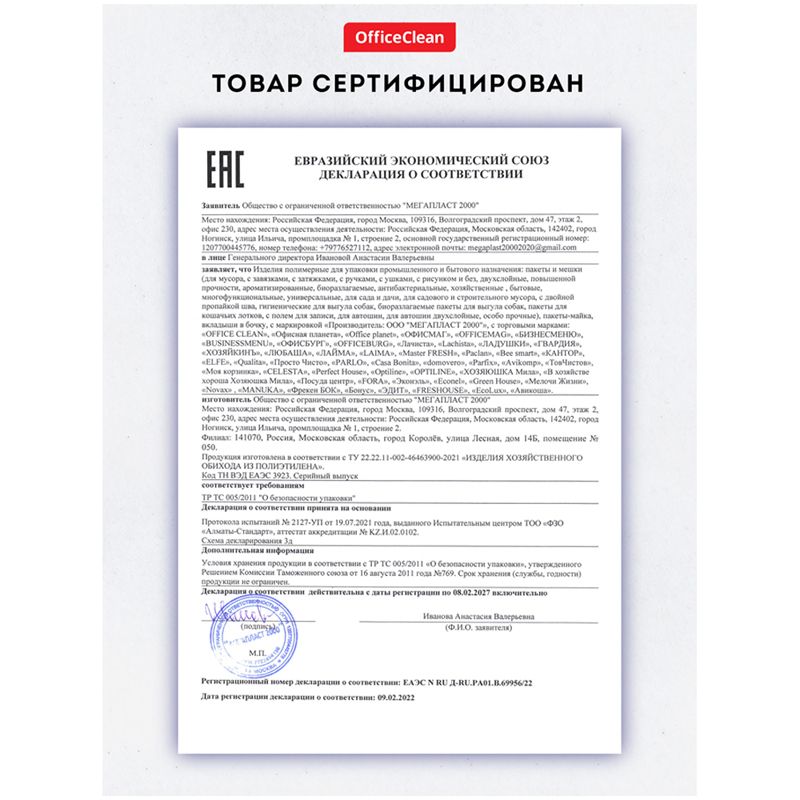 Мешки для мусора 60л OfficeClean ПНД, 60*70см, 10мкм, 20шт., прочные, черные, в рулоне