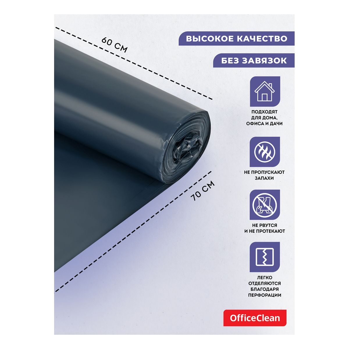 Мешки для мусора 60л OfficeClean ПВД, 60*70см, 30мкм, 20шт., двухлойные, особо прочные, синие, в рулоне,