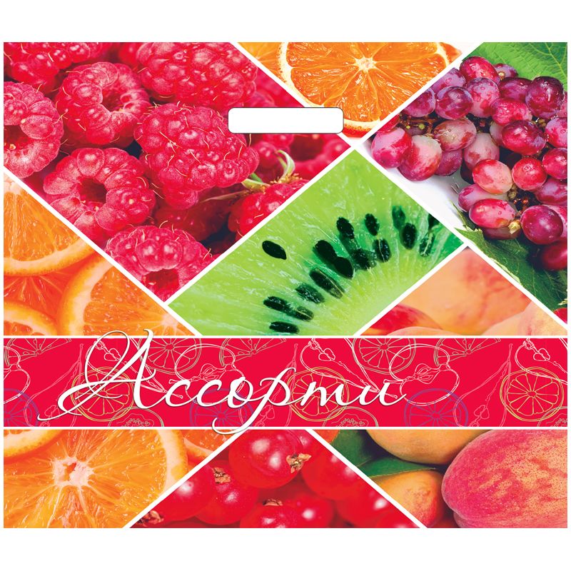 Пакет с прорубной ручкой Артпласт "Клубника крупная/Ягодное ассорти", 45*45+3см, 65мкм