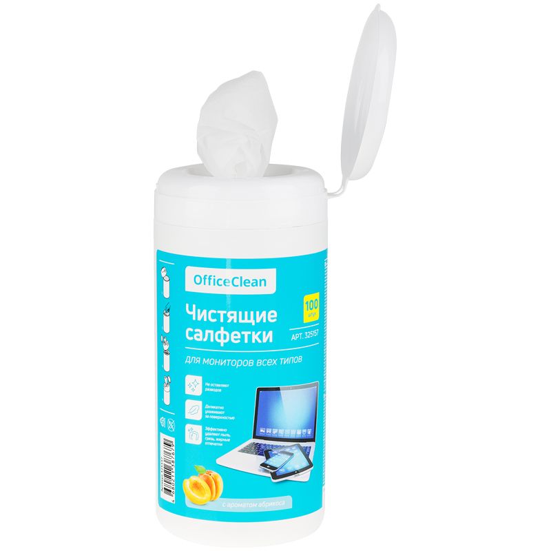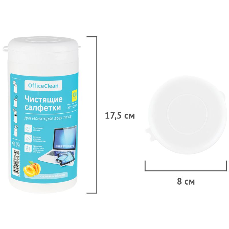 Салфетки чистящие влажные OfficeClean, для мониторов всех типов, в тубе, с ароматом абрикоса, 100шт.