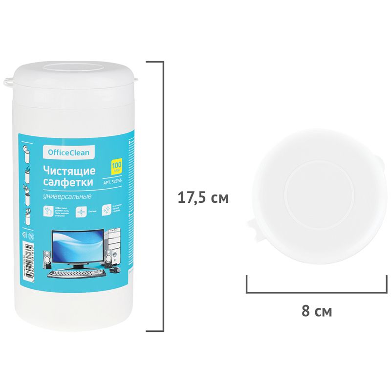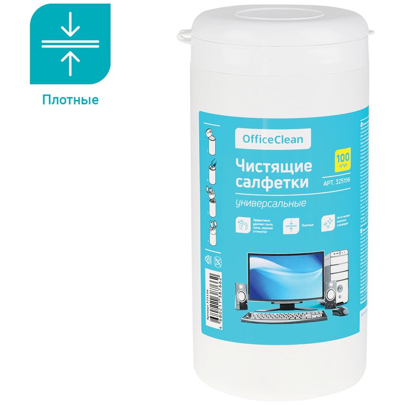 Салфетки чистящие влажные OfficeClean, универсальные, в тубе, плотные, 100шт.
