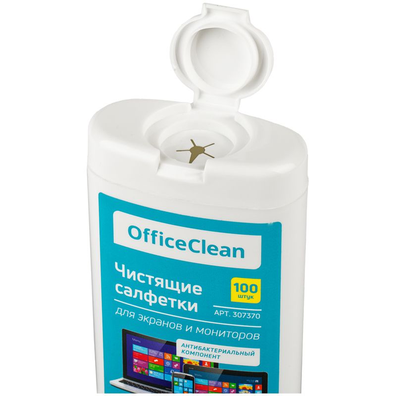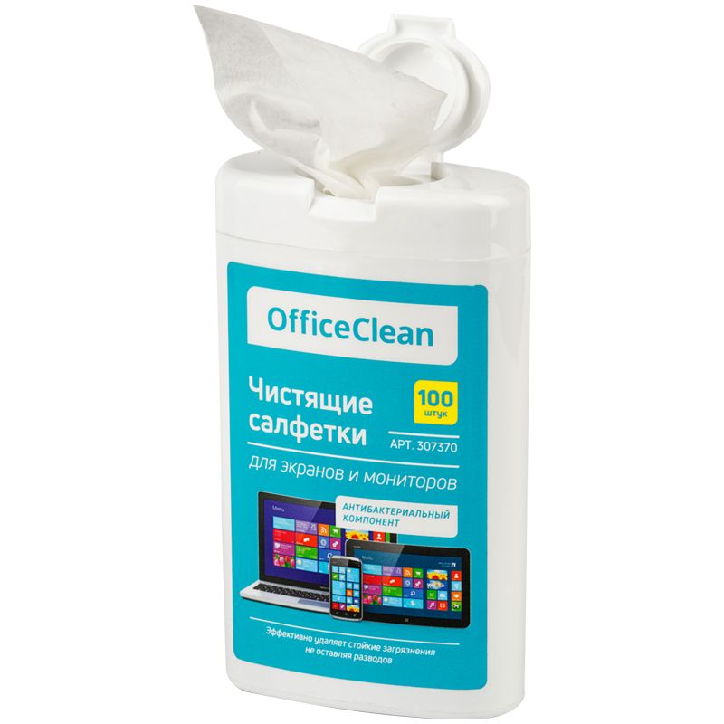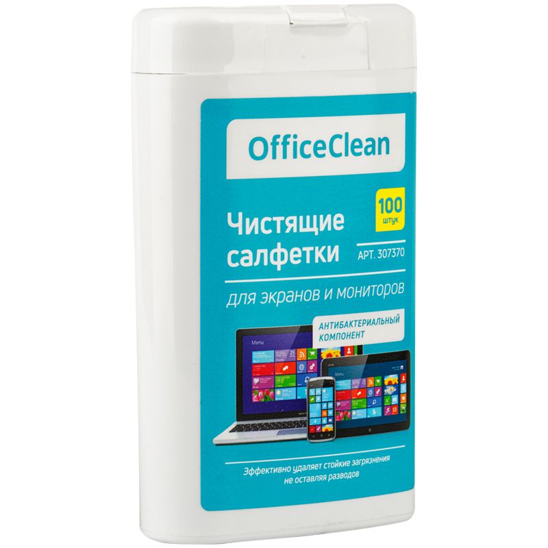 Влажные портативные чистящие салфетки OfficeClean для экранов и мониторов, 100шт. (малая плоская туба)