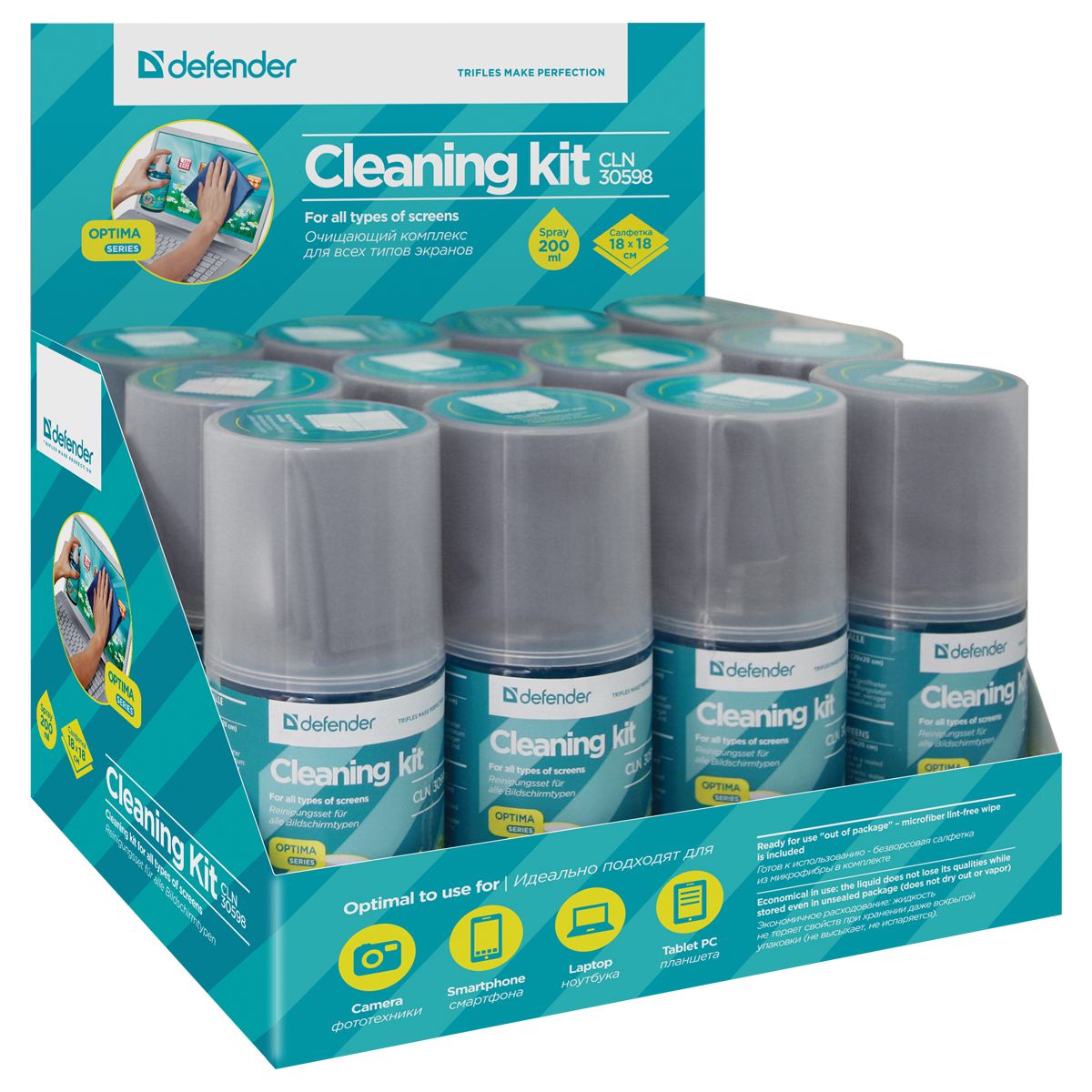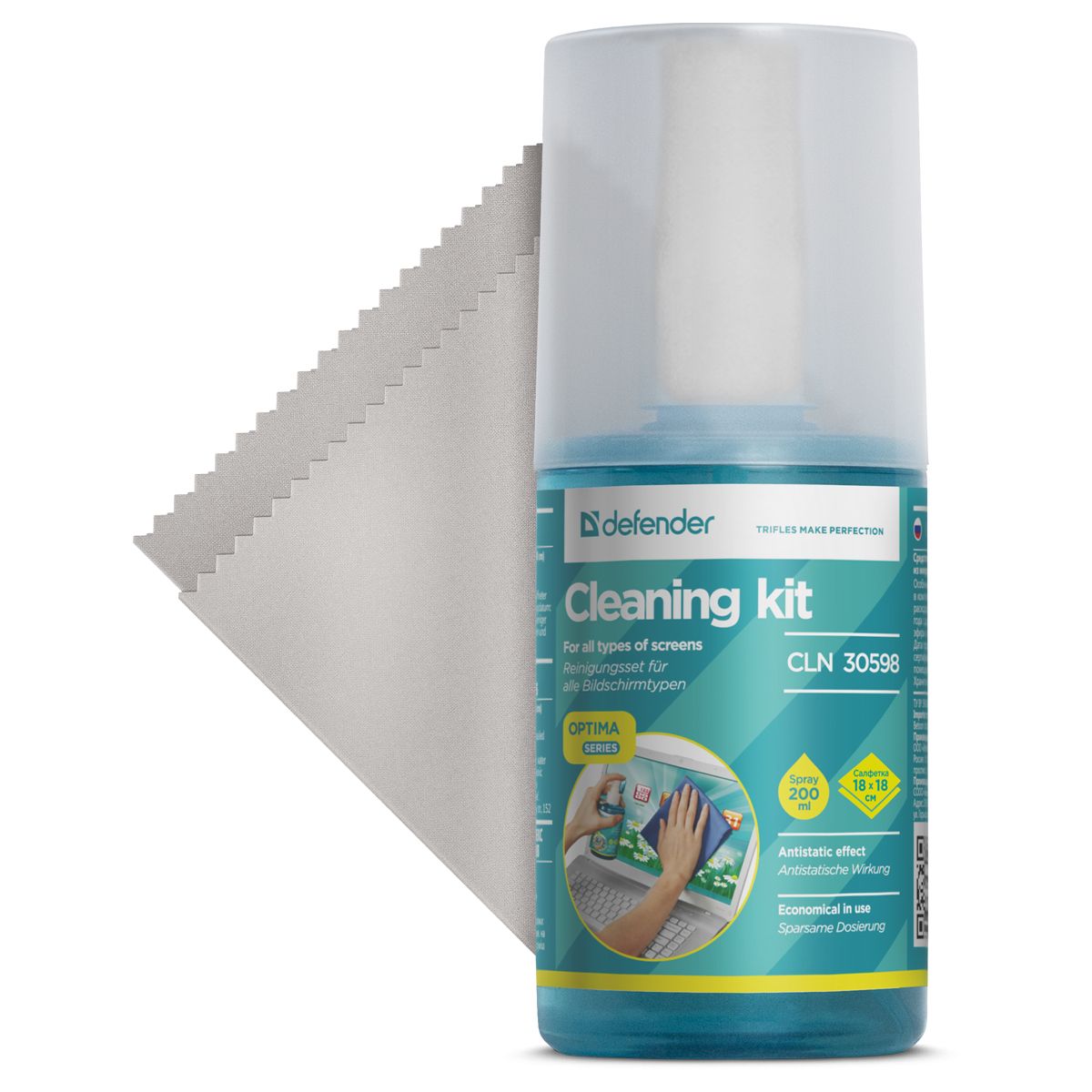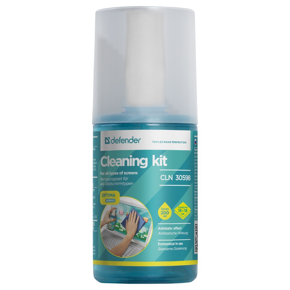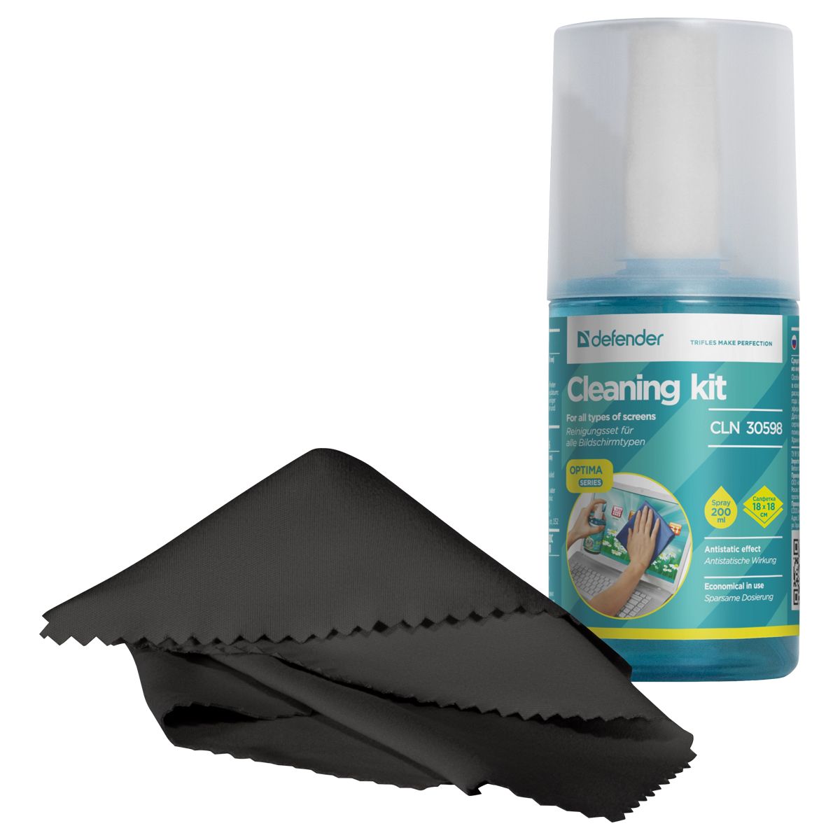 Очищающий комплекс для экранов и мониторов всех типов Defender CLN 30598 "Optima", 200мл + салфетка из микрофибры 18*18см