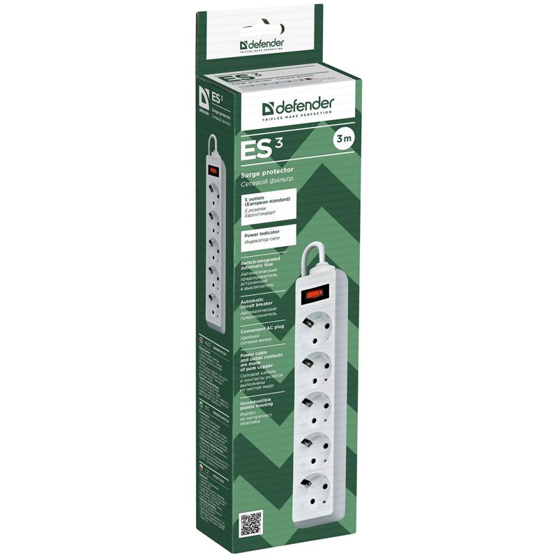 Сетевой фильтр Defender ES 5 розеток 3,0м, белый