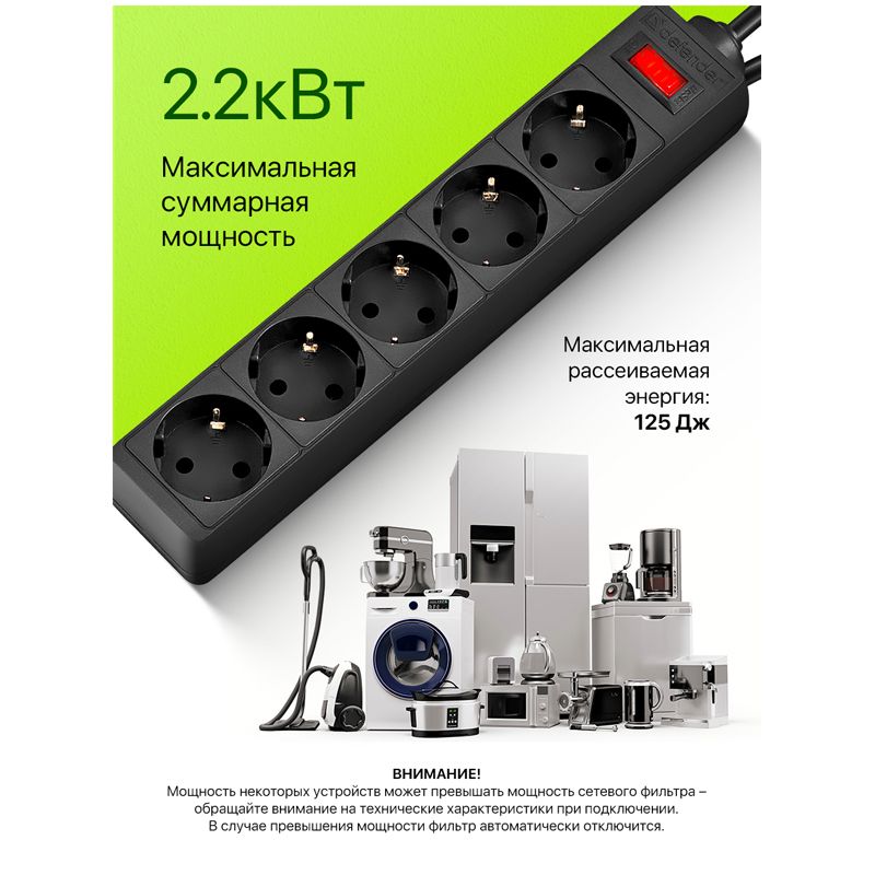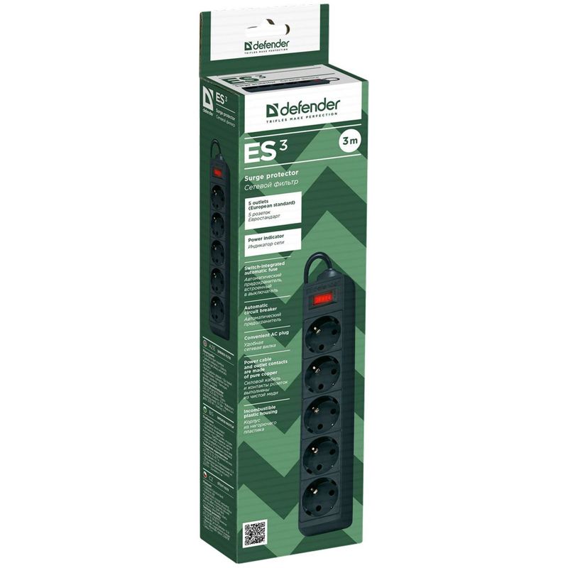 Сетевой фильтр Defender ES 5 розеток 3,0м, черный