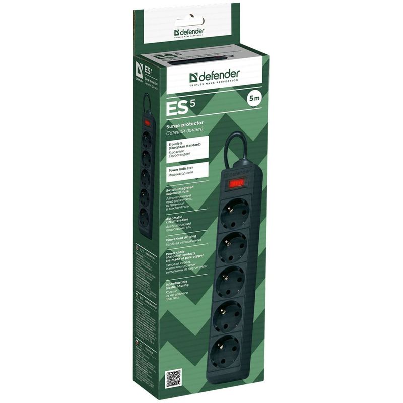 Сетевой фильтр Defender ES 5 розеток 5,0м, черный