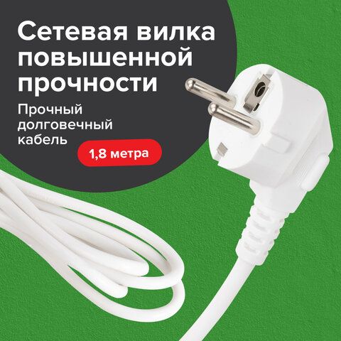 Сетевой фильтр SONNEN SPW-185, 5 розеток с заземлением, выключатель, 10 А, 1,8 м, белый, 513653