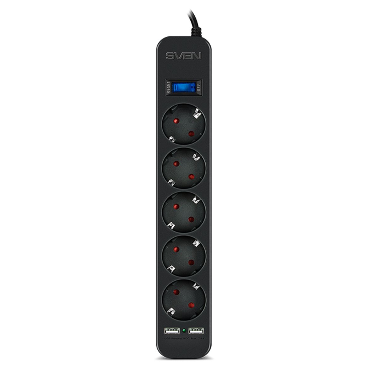 Сетевой фильтр Sven SF-05LU 5 розеток, ,2*USB 2.4А, 5м, черный