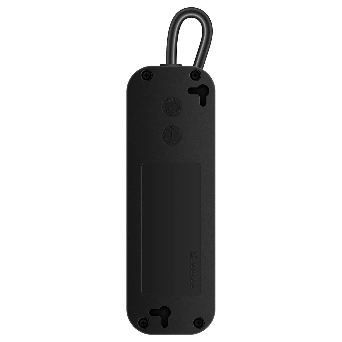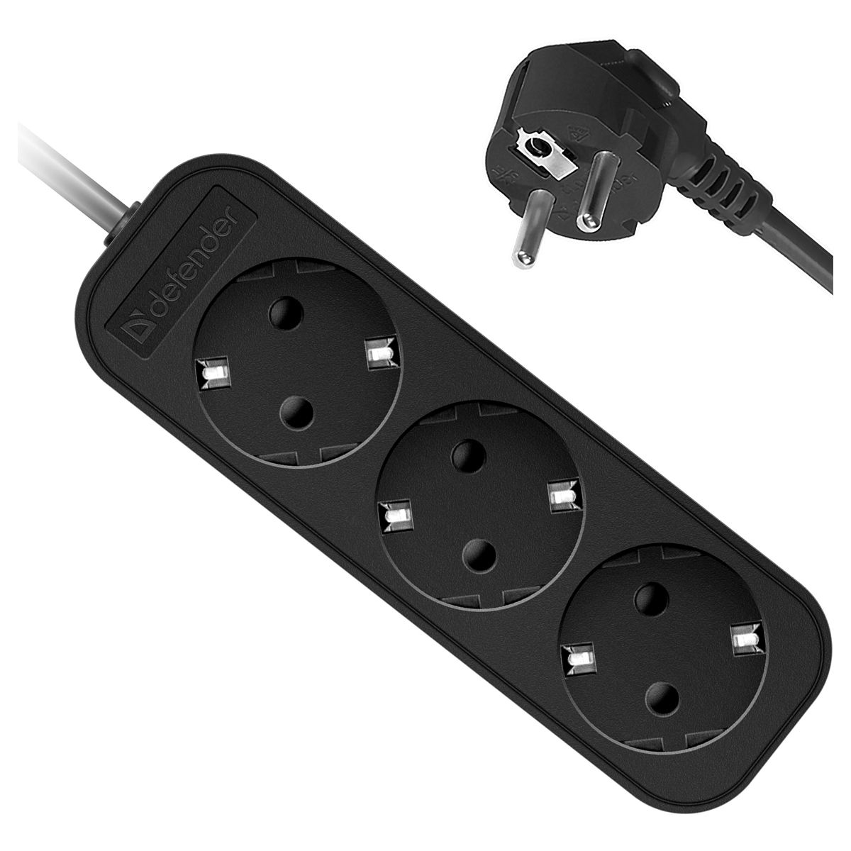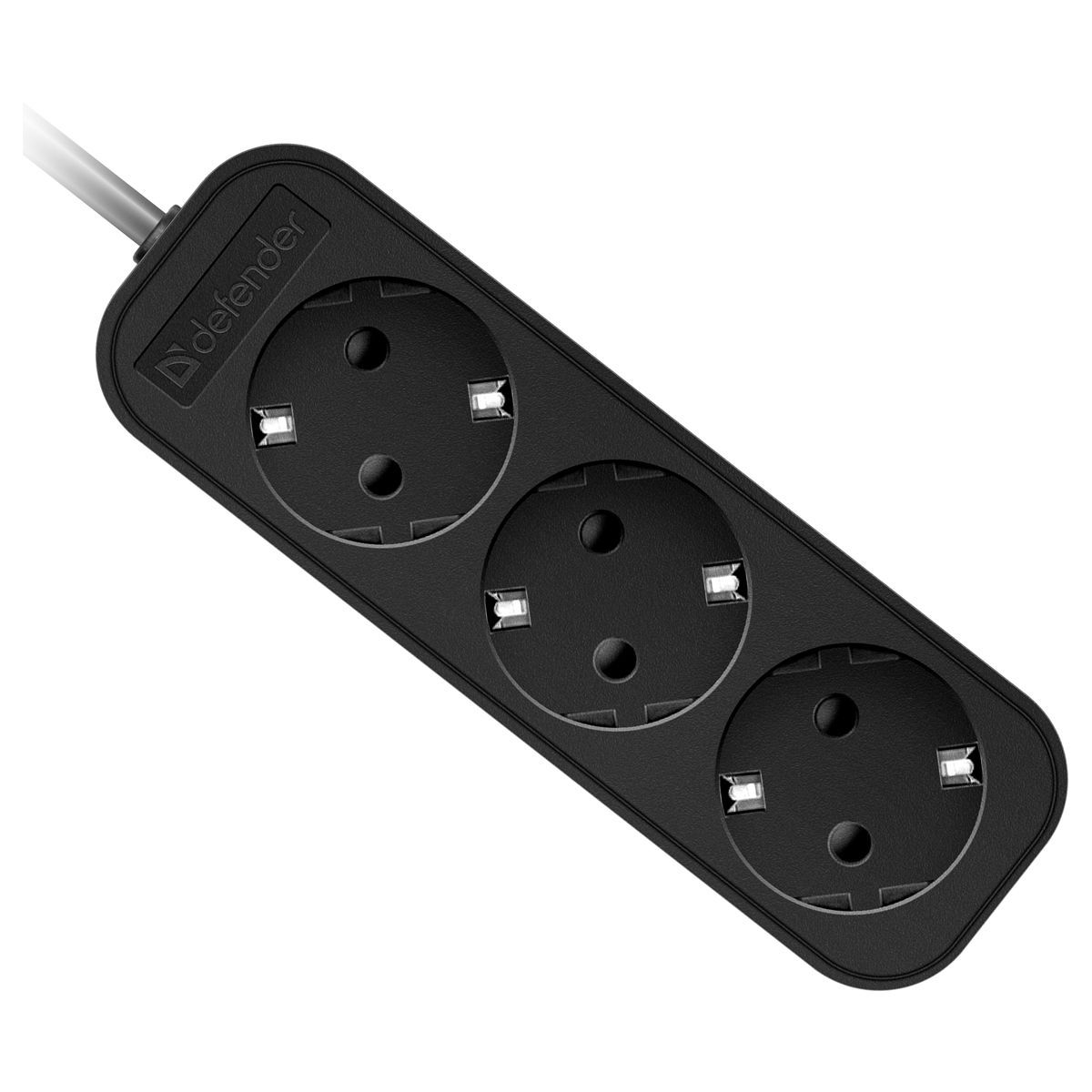Удлинитель Defender M350, 3 розетки, с заземлением, 5м, черный