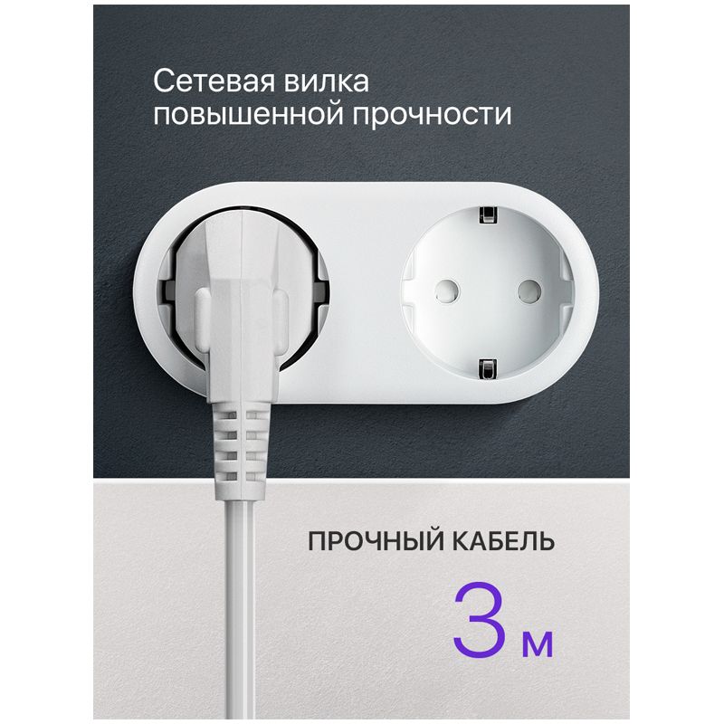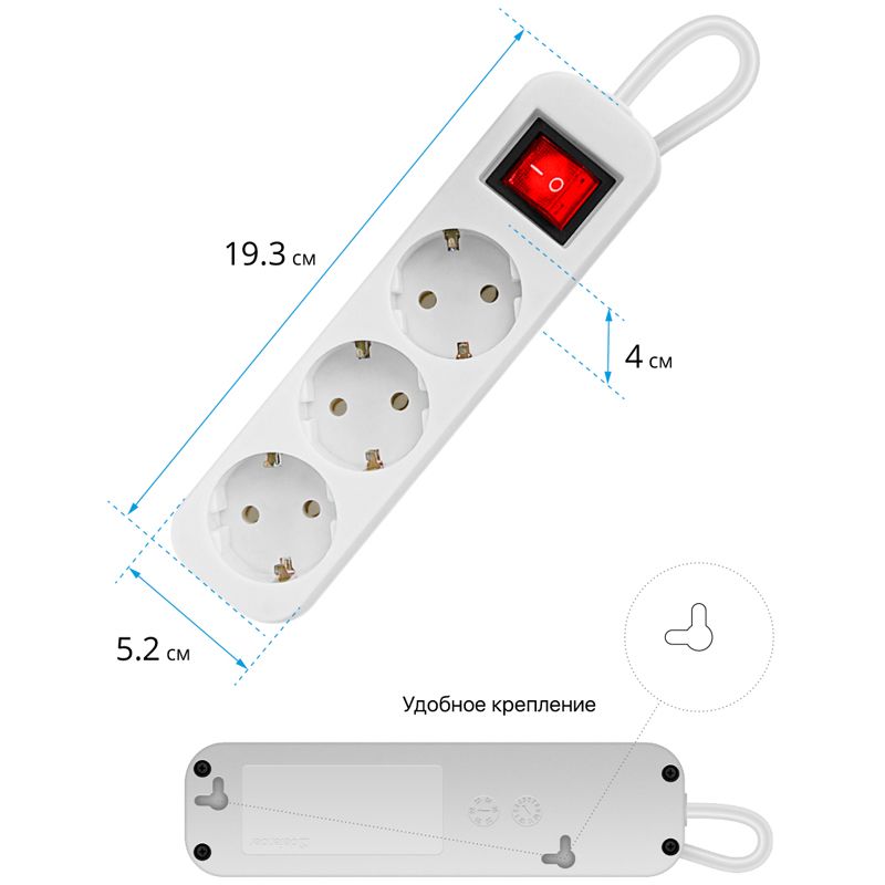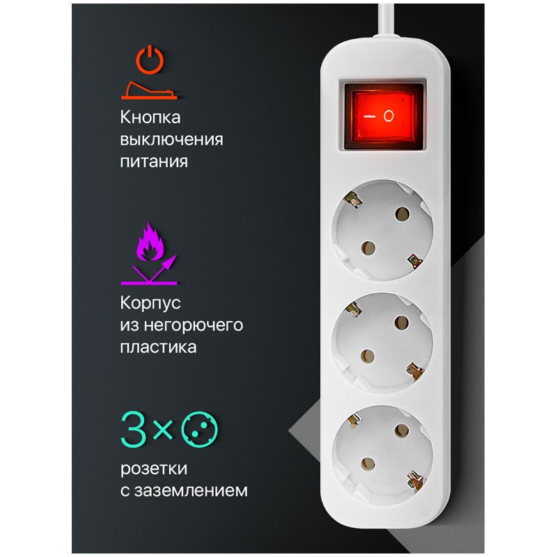 Удлинитель Defender S330, 3 розетки, с заземлением, выключатель, 3м, белый