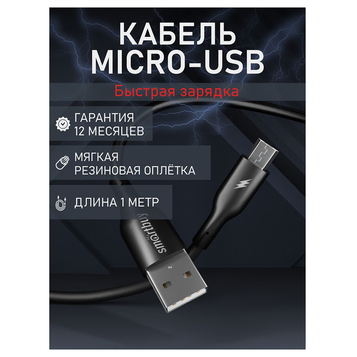 Кабель Smartbuy S25, USB - micro-USB, 3A output, оплетка TPE, 1м, черный