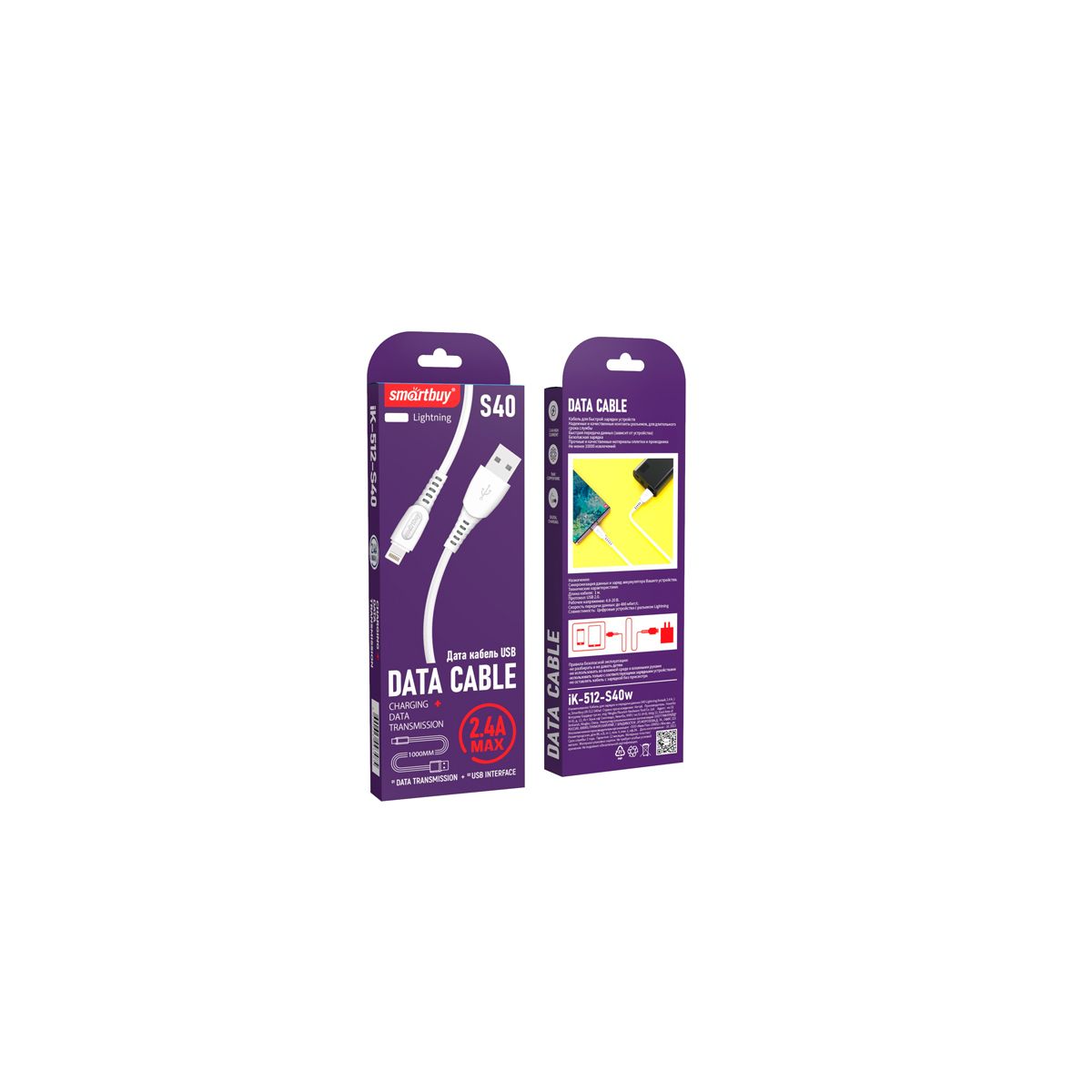Кабель Smartbuy S40, USB - Lightning, для Apple, 3A output, 1м, белый