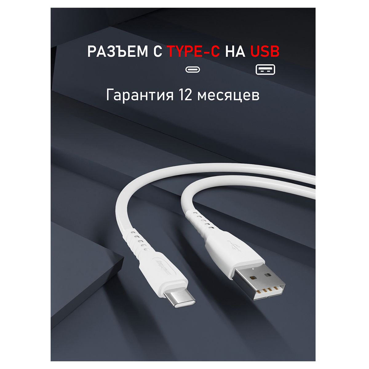Кабель Smartbuy S40, USB - Type-C, 3A output, 1м, белый