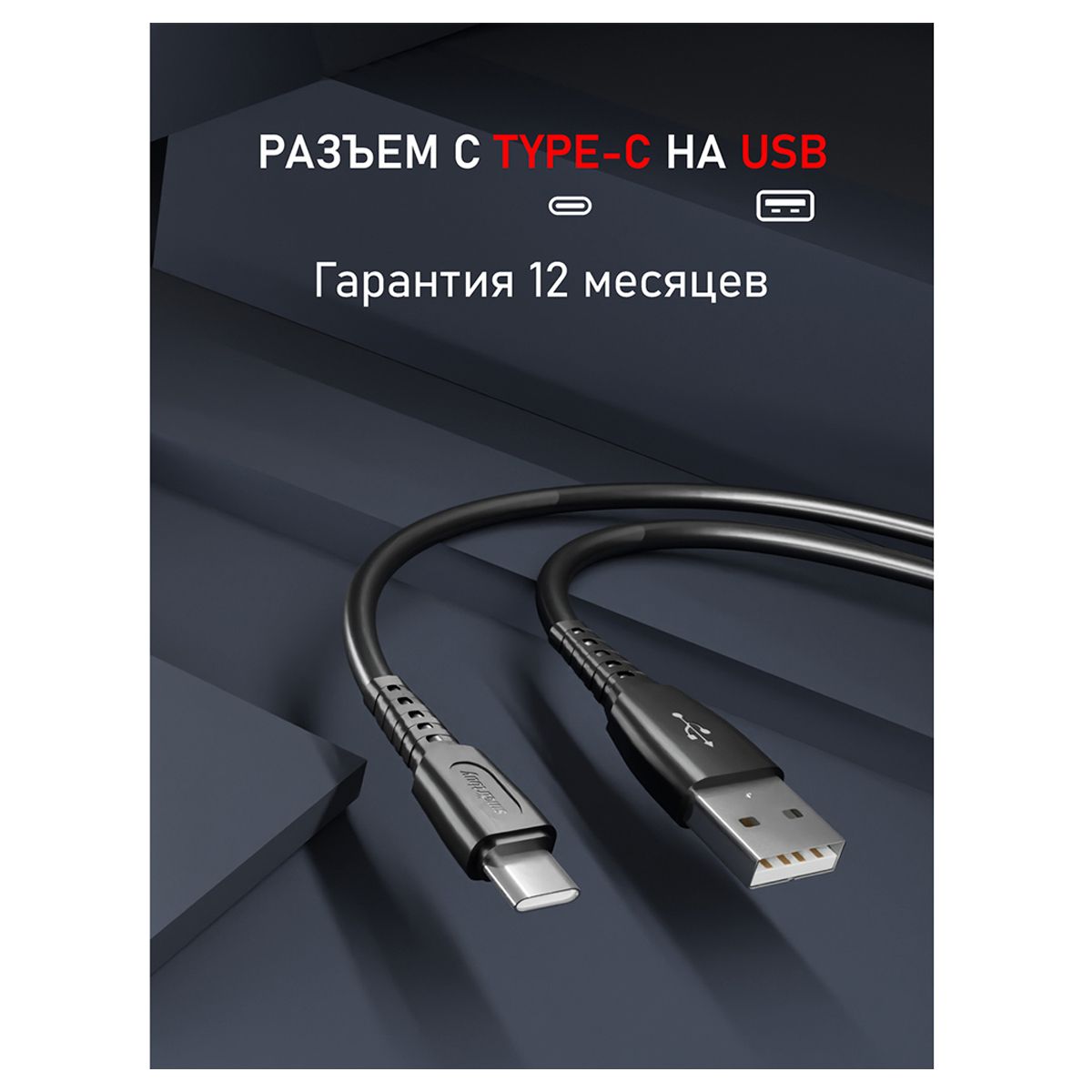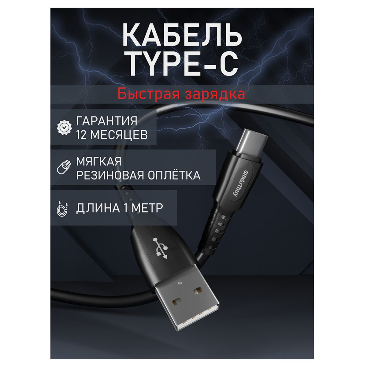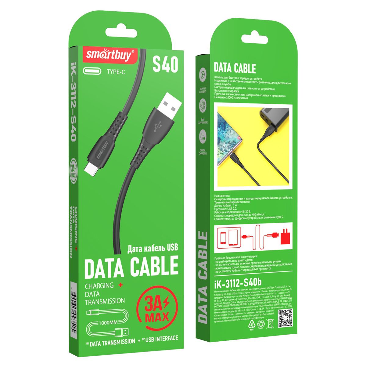 Кабель Smartbuy S40, USB - Type-C, 3A output, 1м, черный