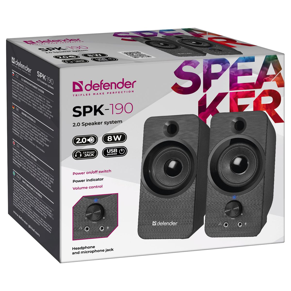 Колонки Defender SPK-190, 2*4W, питание от USB, черный