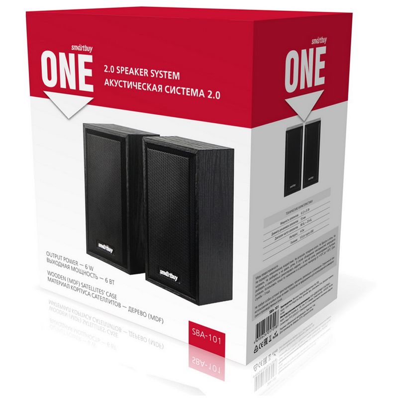 Колонки Smartbuy ONE, 2*3W, деревянный корпус, питание от USB, черный