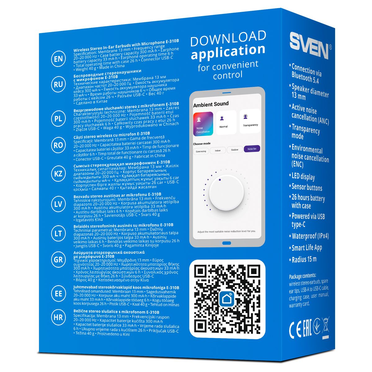 Один из главных признаков по-настоящему флагманских наушников – это, конечно, наличие приложения для мобильных гаджетов, которое дает доступ ко всем параметрам и настройкам. SVEN E-310B поддерживают управление через ПО Smart Life, предлагаемое в версиях для устройств под управлением iOS и Android. С его помощью можно полностью управлять гарнитурой, используя удобный и понятный интерфейс – все настройки всегда под рукой в смартфоне пользователя.
