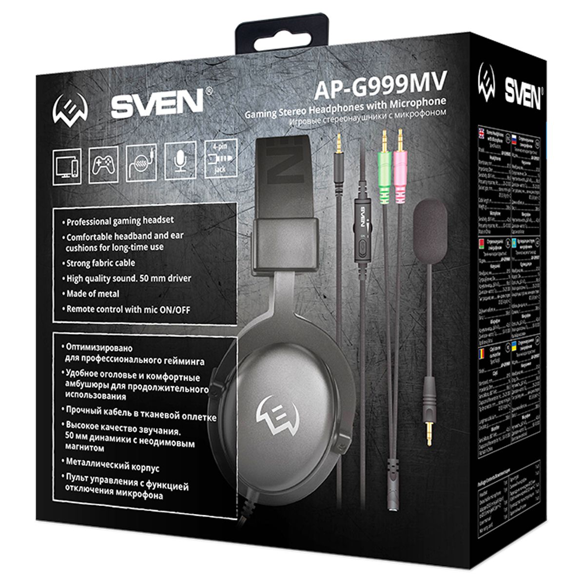 Игровые наушники комплектуется качественным кабелем в тканевой оплетке, на котором размещен пульт управления громкостью с функцией отключения микрофона. Гарнитура SVEN AP-G999MV многофункциональна. Небольшой вес позволяет наушникам быть портативными. SVEN AP-G999MV конектятся со смартфоном - и вы готовы к виртуальным баталиям в любом месте фактического мира.