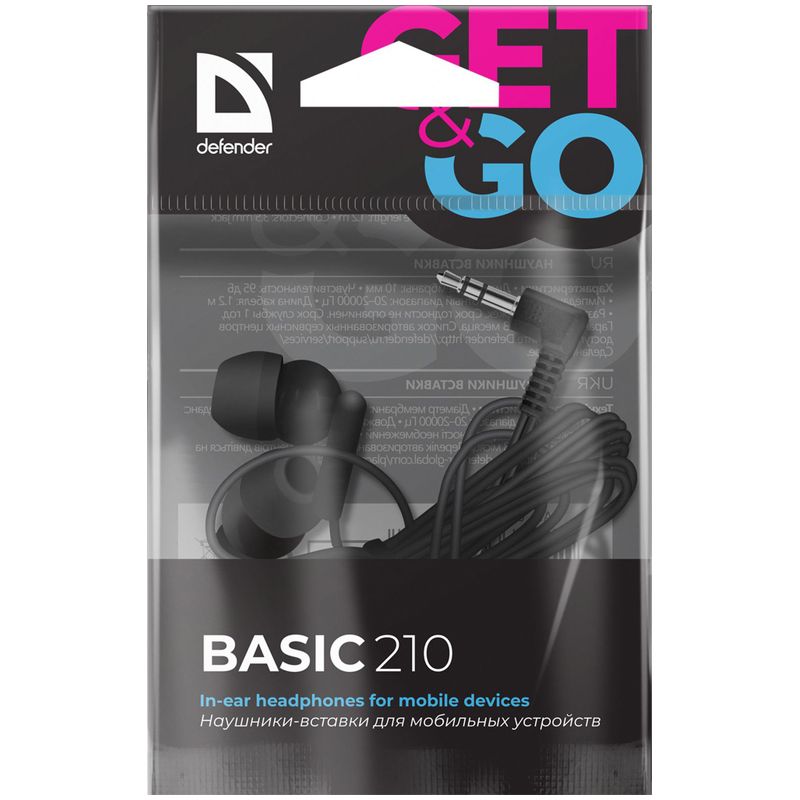 Наушники-вкладыши Defender "Basic" 210, 1,2м, черный