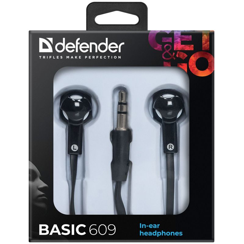 Наушники-вкладыши Defender "Basic" 609, 1,1м, черный, белый