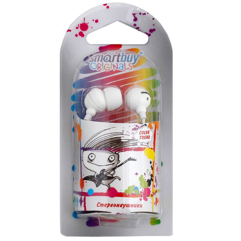 Наушники-вкладыши SmartBuy "Color Trend", 1,2м, белый