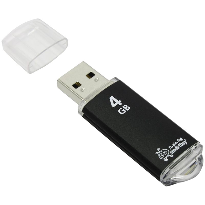 Память Smart Buy "V-Cut" 4GB, USB 2.0 Flash Drive, черный (металл. корпус )