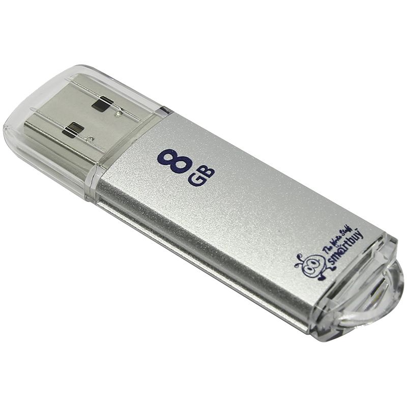 Память Smart Buy "V-Cut" 8GB, USB 2.0 Flash Drive, серебристый (металл. корпус )