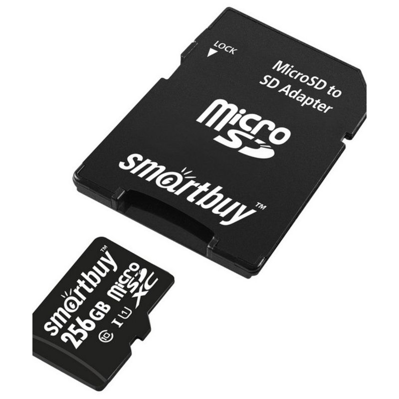 Карта памяти SmartBuy MicroSDXC 256GB UHS-1, Class 10, скорость чтения 90Мб/сек (с адаптером SD)