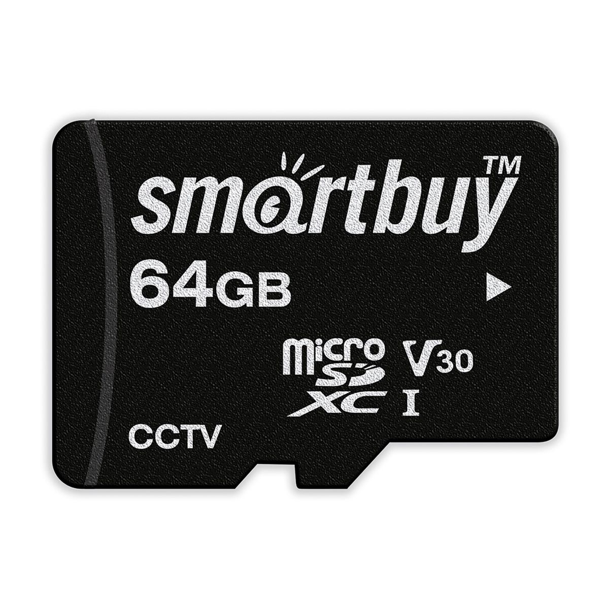 Карта памяти SmartBuy MicroSDXC 64GB UHS-1, Class 10, скорость чтения 95Мб/сек, для видеонаблюдения (с адаптером SD)