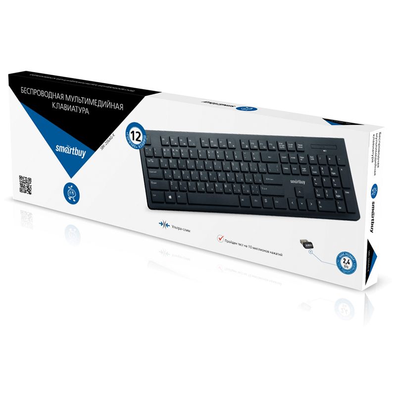 Клавиатура беспроводная Smartbuy 206, мультимедийная, USB, черная