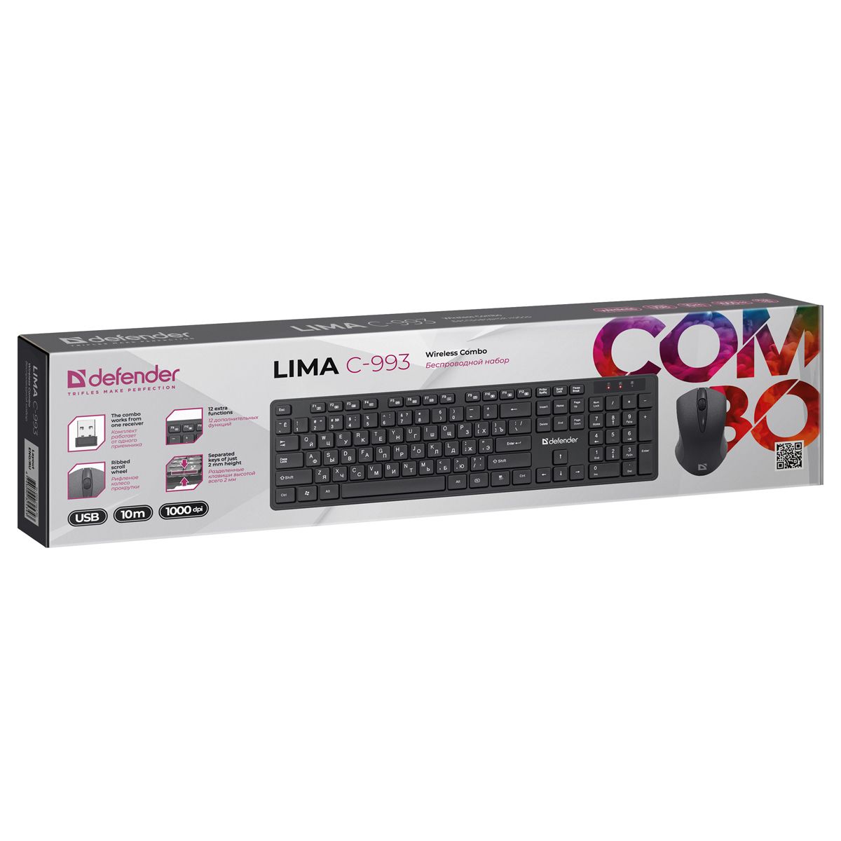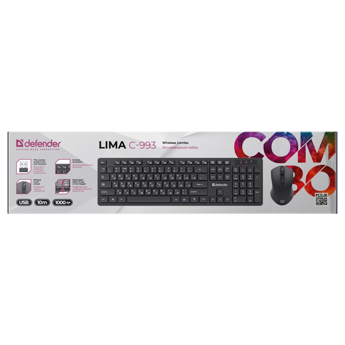 Комплект беспроводной клавиатура + мышь Defender "Lima C-993", черный