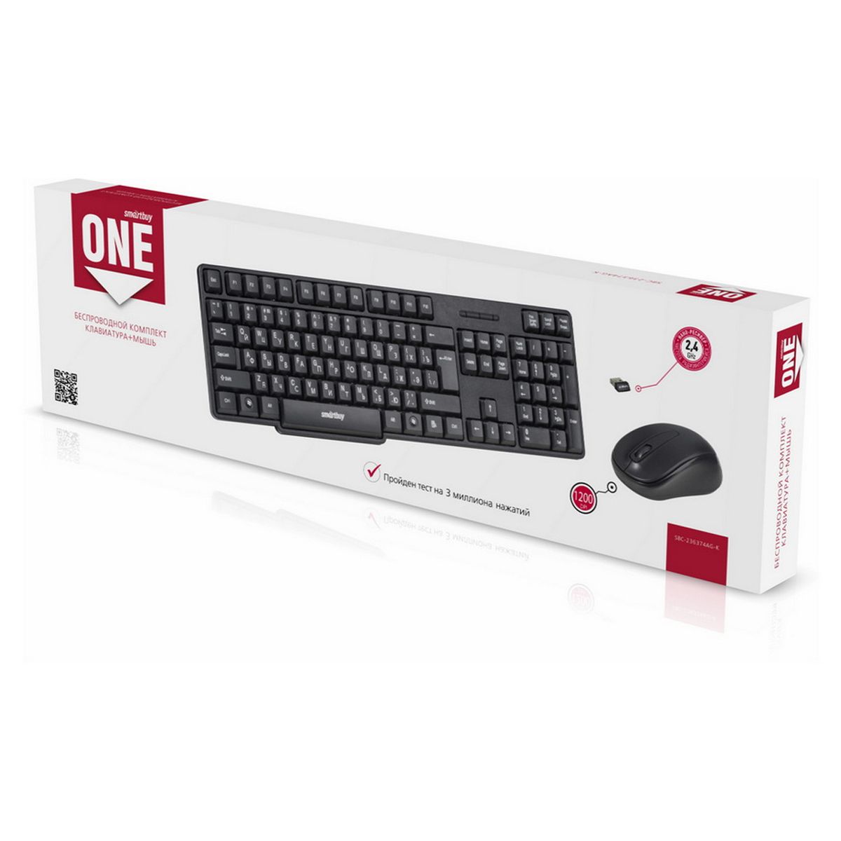 Комплект беспроводной клавиатура + мышь Smartbuy ONE 236374AG, USB, черный