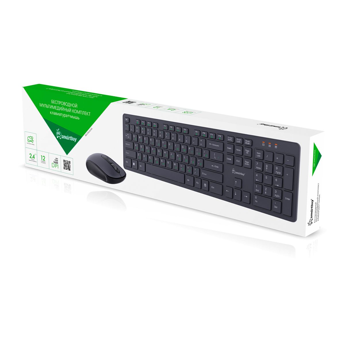 Комплект беспроводной клавиатура + мышь Smartbuy ONE 240262AG, низкопрофильная, бесшумная работа кнопок, USB, черный