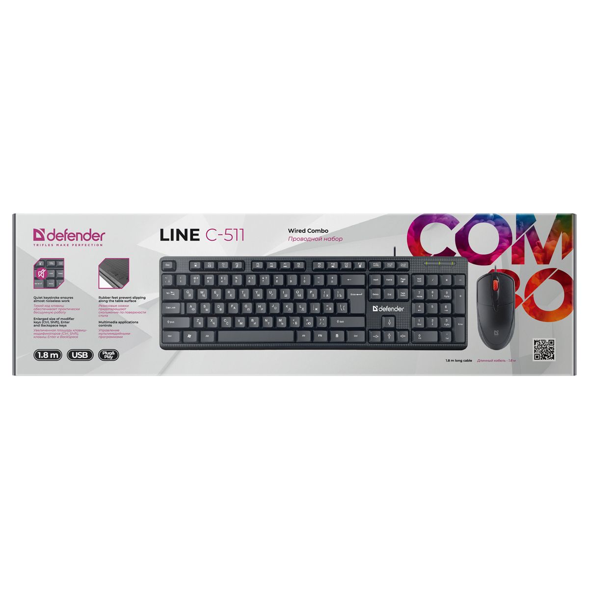 Комплект клавиатура + мышь Defender "Line C-511", черный