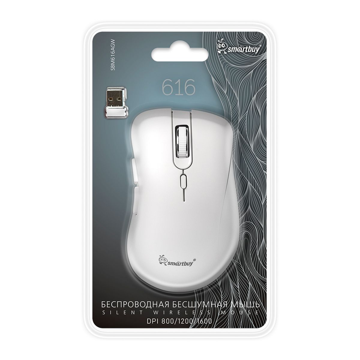 Мышь беспроводная Smartbuy 616AG, бесшумная работа кнопок, белый, 5btn+Roll