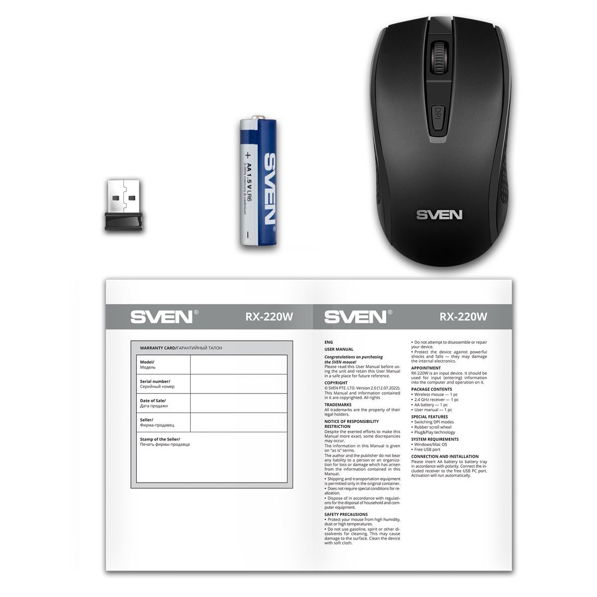 Мышь беспроводная Sven RX-220W, черный, 3btn+Roll