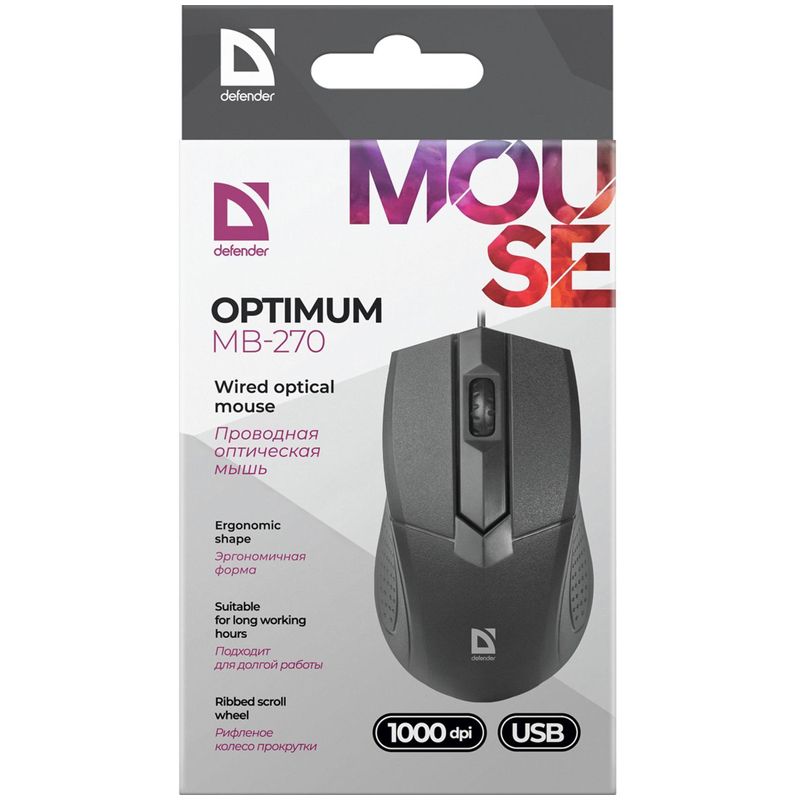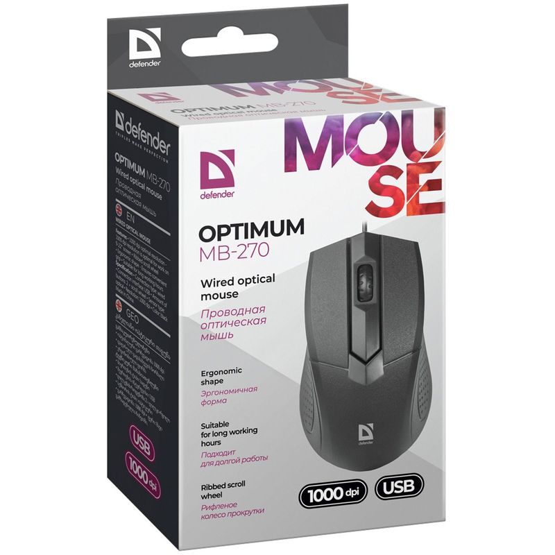 Мышь Defender Optimum MB-270, USB, черный, 3btn+Roll