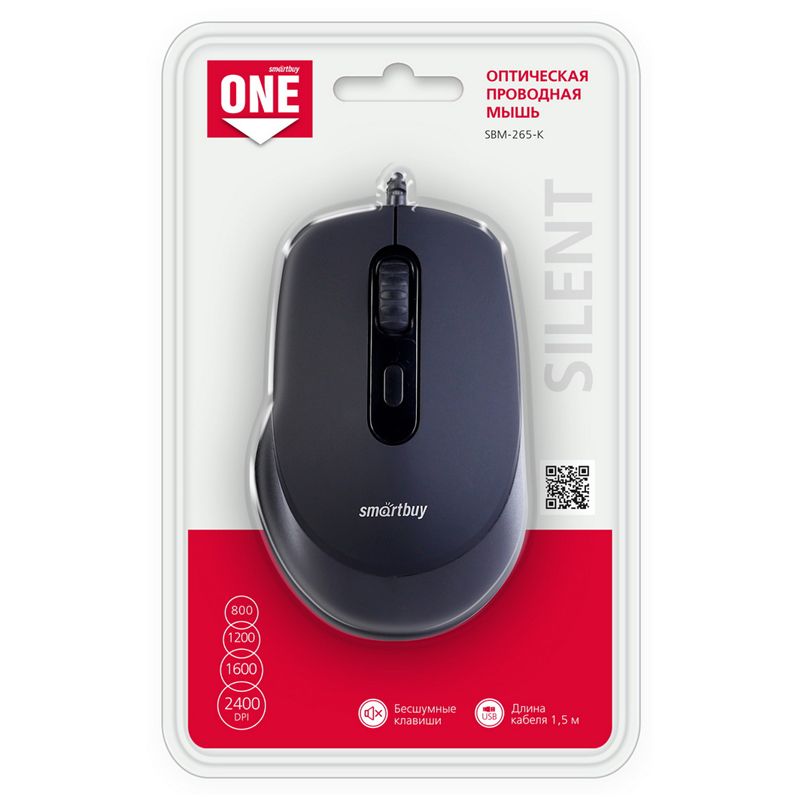 Мышь Smartbuy ONE 265-K, бесшумная, черный, 4btn+Roll