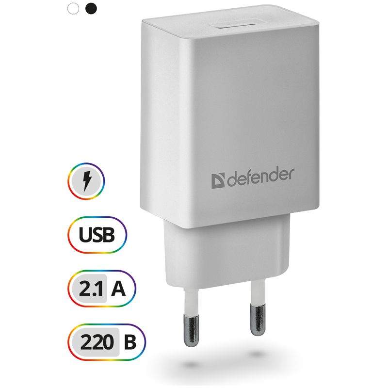 Зарядное устройство сетевое Defender EPA-10, 1*USB, 2.1А output, пакет, белый