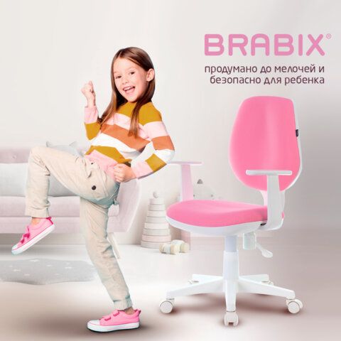 Кресло BRABIX "Fancy MG-201W", с подлокотниками, пластик белый, розовое, 532409, MG-201W_532409