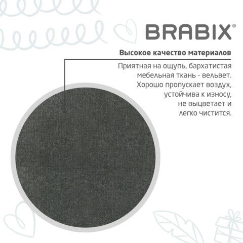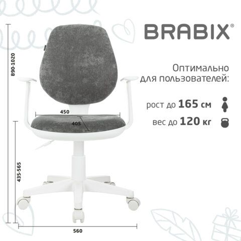 Кресло детское BRABIX "Fancy MG-201W", с подлокотниками, пластик белый, велюр, серое, 533010
