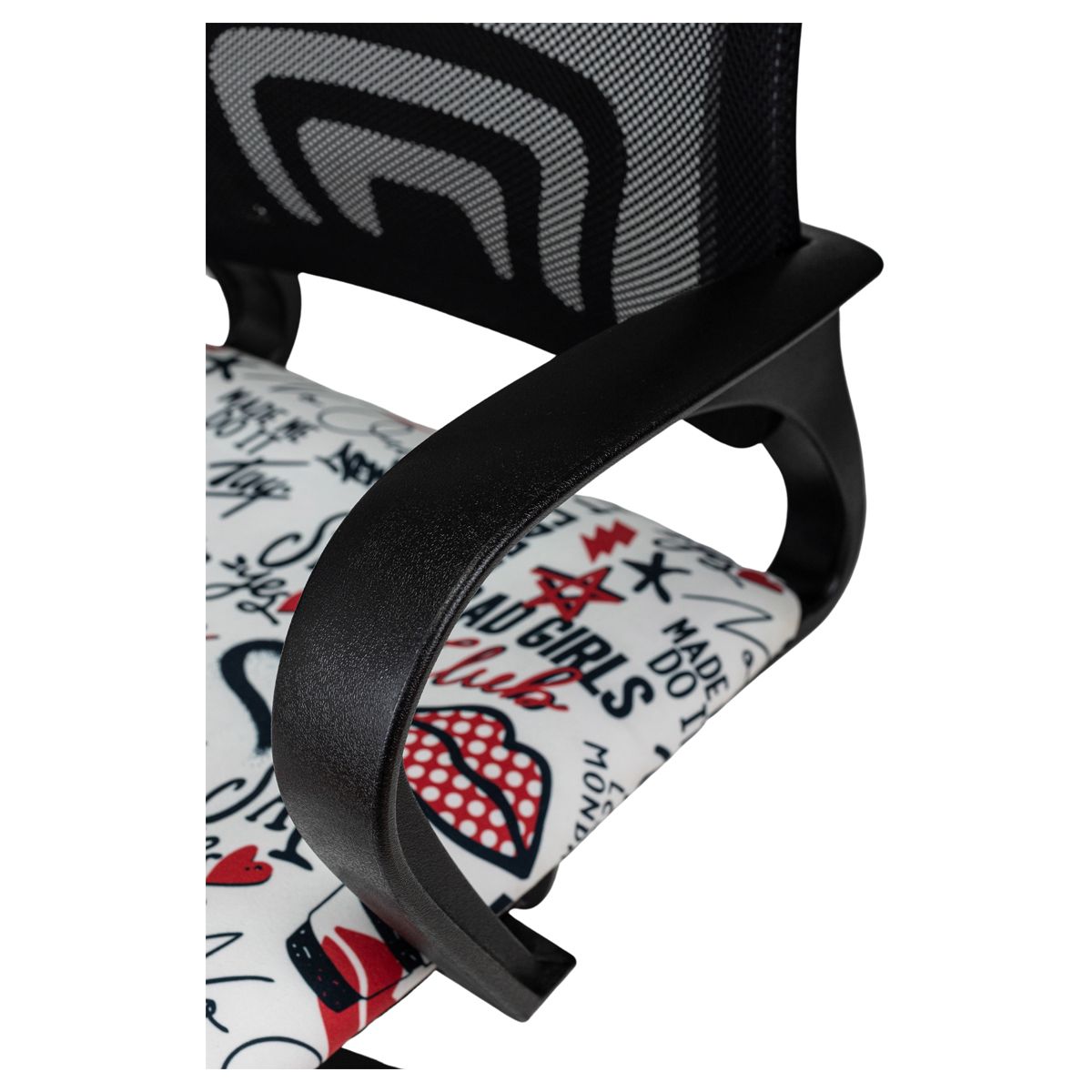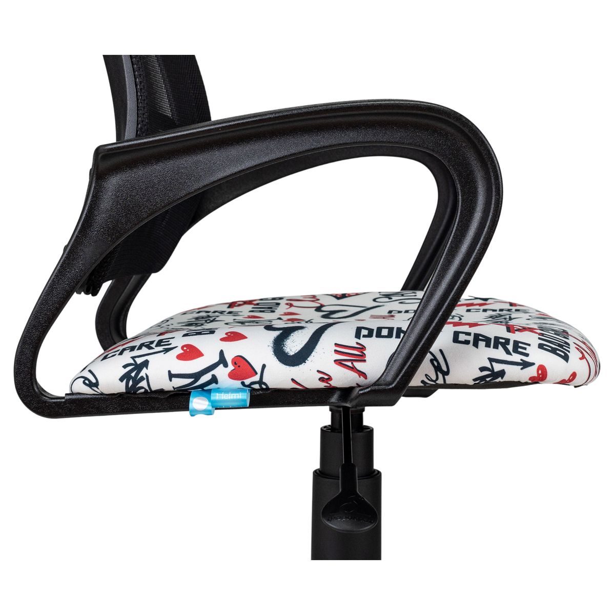 Кресло детское Helmi HL-K95 R (695) "Airy", спинка сетка черная/сиденье ткань с рисунком red lips, пиастра