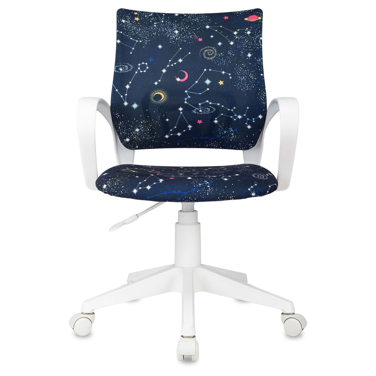 Кресло детское Helmi HL-K95 R (W695) "Airy", спинка сетка/сиденье ткань с рисунком зодиак т.синий, пиастра, пластик белый